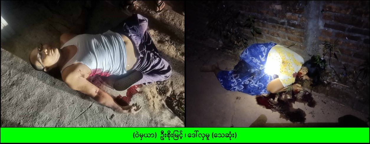 အဆိုပါ သတင်းအရ သက်ဆိုင်ရာမှ ဖြစ်စဉ်အားစိစစ်ရာ ယမန်နေ့ (မတ် ၉)ညနေ ၆နာရီအချိန်တွင် ဦးစိုးမြင့်နှင့် ဒေါ်လှမူ တို ၂ ဦးသည် ၎င်းတို၏နေအိမ်မှ မောင်းမကန်ကျေးရွာသို ဈေးဝယ်ရန် နံပါတ်(စိစစ်ဆဲ) Vigo မော်တော်ယာဉ်ဖြင့် သွားရောက်ခဲ့ရာ၏ အနောက်မြောက်ဘက် ၂၃ မိုင်ခန့်၊ ကျောက်ဆင်ကျေးရွာအဝင် အရောက်၌ အကြမ်းဖက်အုပ်စု PDF ၃၀ ဦး ခန့်က မော်တော်ယာဉ်အားတားဆီးစစ်ဆေးကာ ဦးစိုးမြင့်နှင့် ဒေါ်လှမူတိုအား သေနတ်ဖြင့်ပစ်ခတ်သဖြင့် ဦးစိုးမြင့်တွင် ချိုစောင်း ကျည်ဖောက်ဝင် ဒဏ်ရာ ၁ ချက်၊ ဝဲရင်အုံကျည်ဖောက်ဝင်ဒဏ်ရာ ၁ ချက်၊ ဝမ်းဗိုက်ကျည်ဖောက်ဝင်ဒဏ်ရာ ၂ ချက်၊ မေးရိုး ကျည်ဖောက်ဝင်ဒဏ်ရာ ၁ ချက်၊ ဆီးခုံကျည် ဖောက်ဝင်ဒဏ်ရာ ၁ ချက်(စုစုပေါင်းဒဏ်ရာ ၆ ချက်)ဖြင့်လည်းကောင်း ဒေါ်လှမူတွင် ဝဲပါး ကျည်ဖောက်ဝင်ဒဏ်ရာ ၁ ချက်၊ ယာရင်အုံ ကျည်ဖောက်ဝင် ဒဏ်ရာ ၁ ချက် (စုစုပေါင်း ဒဏ်ရာ ၂ ချက်) ဖြင့် လည်းကောင်း သေဆုံးသွားသည်ကို သိရှိခဲ့ကြောင်း သိရသည်။