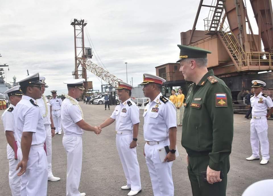 မြန်မာ-ရုရှား နှစ်နိုင်ငံ ဒုတိယအကြိမ် ရေကြောင်းလုံခြုံရေးဆိုင်ရာ လေးရက်ကြာ လေ့ကျင့်ခန်းဆောင်ရွက်ရန်နှင့် ချစ်ကြည်ရေးခရီး လည်ပတ်ရန်အတွက် အောက်တိုဘာ ၂၀ ရက်တွင် ရုရှားရေတပ် Russian Pacific Fleet မှ စစ်ရေယာဉ်လေးစင်း ရန်ကုန်မြို့သို့ ရောက်ရှိလာခဲ့ကြောင်း နိုင်ငံ တော်စီမံအုပ်ချုပ်ရေးကောင်စီ သတင်းထုတ်ပြန်ရေးအဖွဲ့မှ ထုတ်ပြန်ချက်အရ သိရသည်။