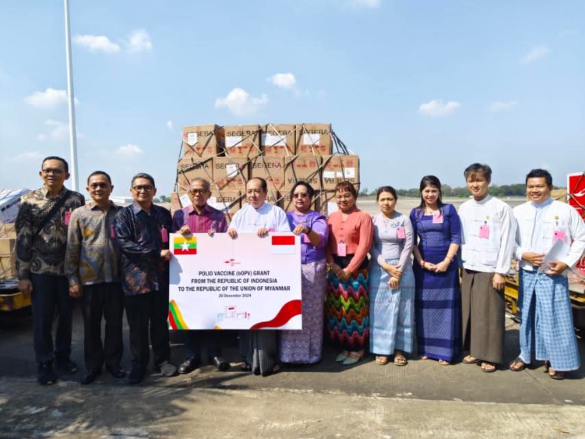 အင်ဒိုနီးရှားသမ္မတနိုင်ငံအစိုးရမှ မြန်မာနိုင်ငံသို့ အင်ဒိုနီးရှားရူပီယာ ၈ ဒသမ ၇ ဘီလီယံ တန်ဖိုးရှိ ပိုလီယိုရောဂါကာကွယ်ဆေး (bOPV) ၂ ဒသမ ၇၁၆ သန်း doses လှူဒါန်းလိုက်ကြောင်း ကျန်းမာရေးဝန်ကြီးဌာနမှ သိရသည်။