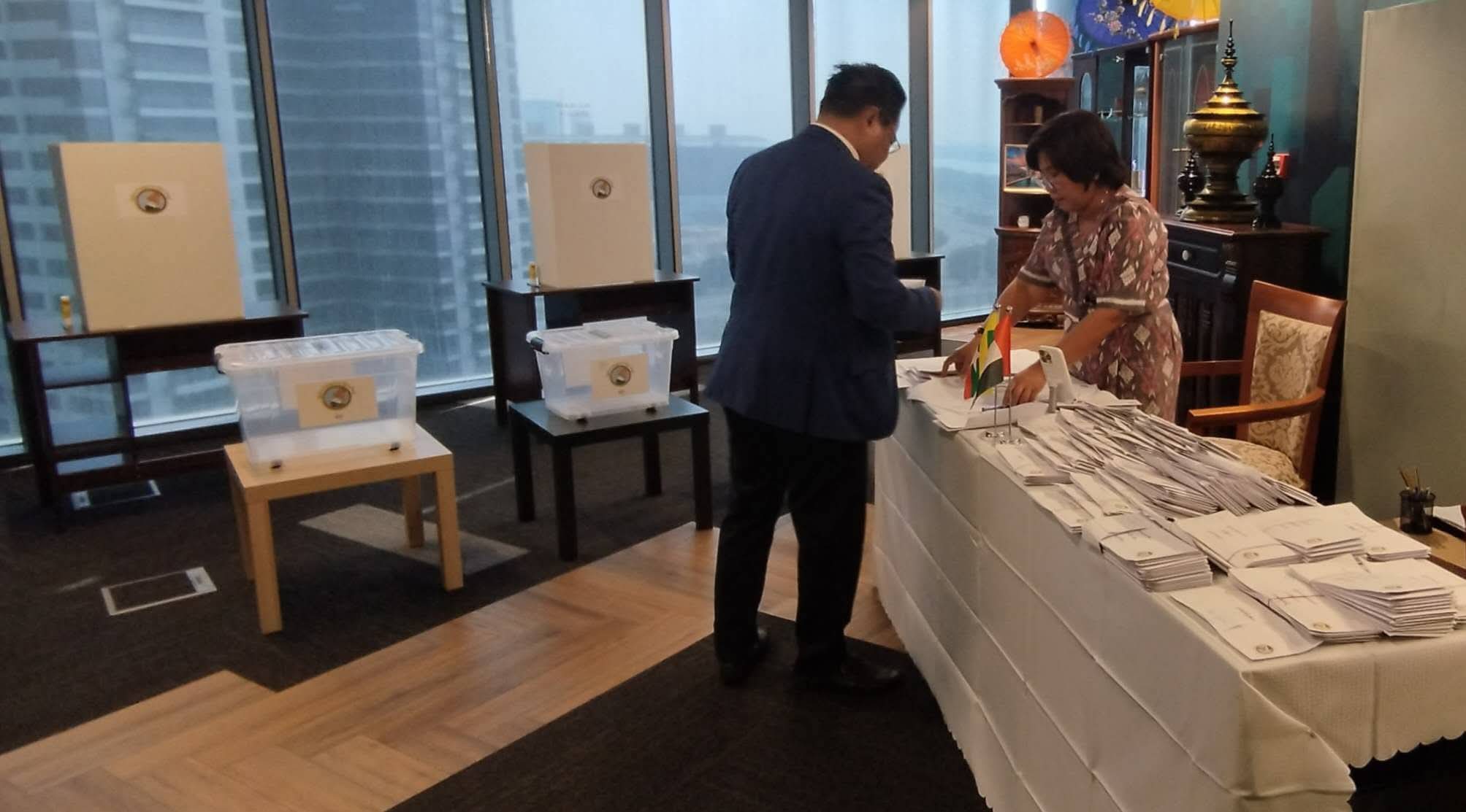 အထွေထွေရွေးကောက်ပွဲအတွက် ကြိုတင်ဆန္ဒမဲပေးခြင်း ကို အဘူဒါဘီ မြန်မာသံရုံးတွင် ပထမနေ့အဖြစ် စတင်ဆောင်ရွက်