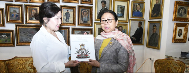 နစကဥက္ကဋ္ဌ နိုင်ငံတော်ဝန်ကြီးချုပ်၏ဇနီး ဦးဆောင်သော ကိုယ်စားလှယ်အဖွဲ့အား ဘူရားတီးယားပြည်နယ် ဒုတိယအကြီးအကဲ Ms. Evgenia Yurievna Ludupova နှင့် Leo Bardamov ပြတိုက်မှတာ ဝန်ရှိသူများက ကြိုဆိုနှုတ်ဆက်ခဲ့ကြသည်။