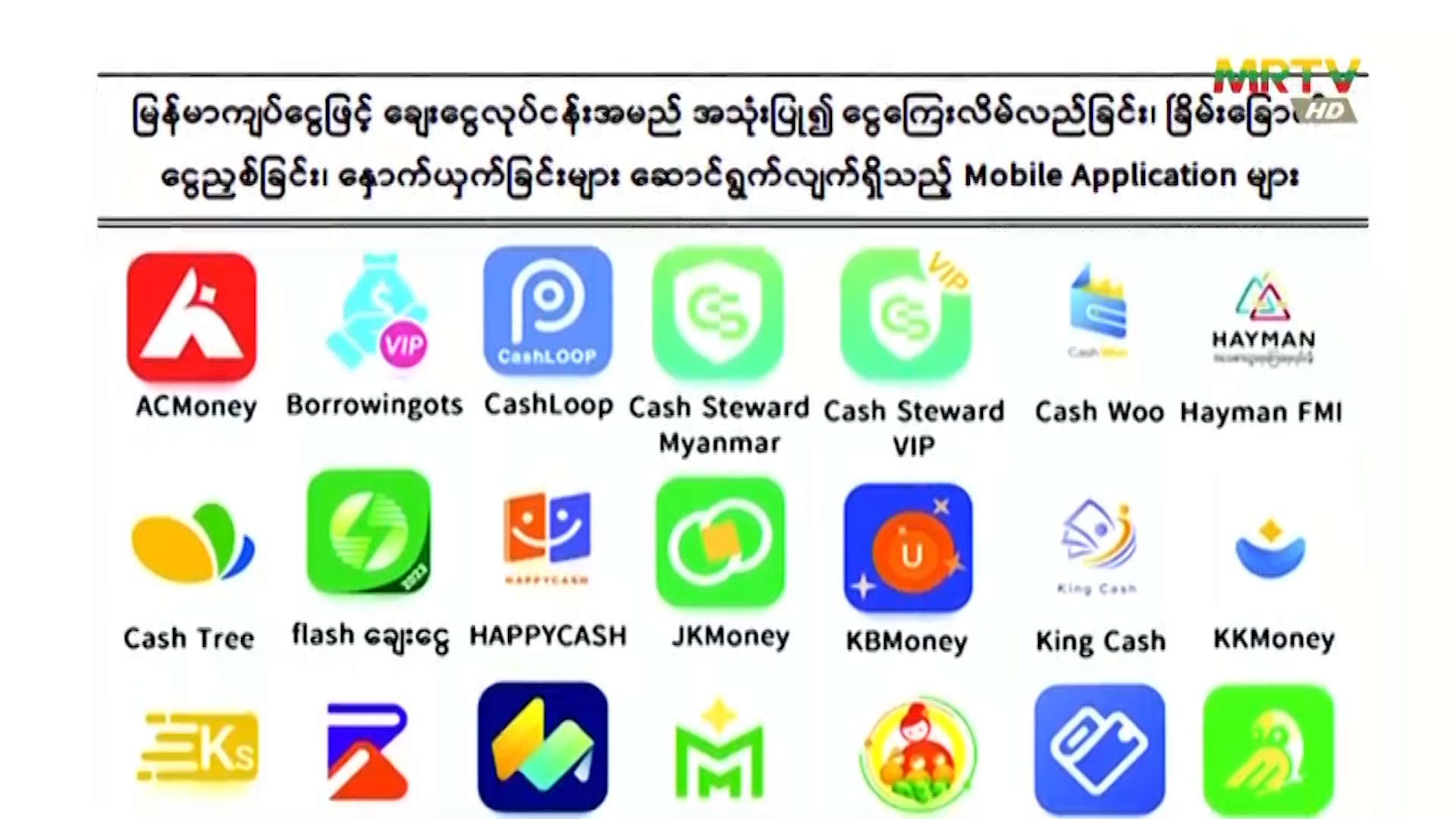 အွန်လိုင်းကနေ ချေးငွေအမည်ခံ အက်ပလီကေးရှင်းအတုတွေအသုံးပြုပြီး လိမ်လည်မှုတွေများပြားလာတဲ့အတွက် သတိပြုဖို့လိုအပ်တယ်လို့ မြန်မာနိုင်ငံရဲတပ်ဖွဲ့၊ မှုခင်းရဲတပ်ဖွဲ့ကနေ သိရပါတယ်။