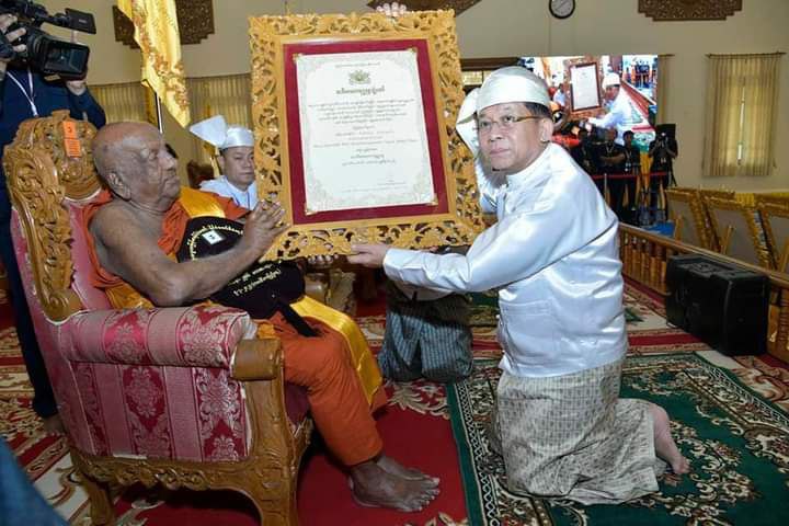 ယင်းနောက် ဆရာတော်ကြီးက နိုင်ငံတော်စီမံအုပ်ချုပ်ရေးကောင်စီဥက္ကဋ္ဌ နိုင်ငံတော်ဝန်ကြီးချုပ်နှင့် အဖွဲ့ဝင်များအား ဗုဒ္ဓဆင်းတုတော်များကို ဓမ္မလက်ဆောင် အဖြစ်ပေးအပ်ပြီး စုပေါင်းမှတ်တမ်းတင်ဓာတ်ပုံရိုက်ကြသည်။