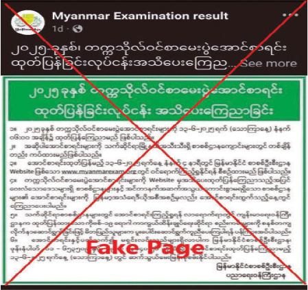 ယခုနှစ်တွင်လည်း ယခင်နှစ်များနည်းတူ အောင်စာရင်း လုပ်ငန်းစဉ်များအားလုံး ဆောင်ရွက်ပြီးစီး၍ အောင်စာရင်း ကြေညာရန် အသင့်ဖြစ်သည့်အချိန်မှသာ အောင်စာရင်းထုတ်ပြန်မည့်ရက်ကို နိုင်ငံပိုင်ရုပ်မြင်သံကြား၊ သတင်းစာများ၊ မြန်မာနိုင်ငံ စာစစ်ဦးစီးဌာန၏ Website နှင့် ဤ Facebook Page တို့မှ တစ်ဆင့် တရားဝင်အချိန်မီအသိပေး ကြေညာမည်ဟု ထုတ်ပြန်ထားသည်။ ထိုတရားဝင်မကြေညာမီ မည်သည့်ရက်ကိုမှ အတည်မပြုကြောင်းနှင့် ယခင်နှစ်မှ ကြေညာချက်အဟောင်းများကို ဖြတ်ညှပ်ကပ် ပြုလုပ်၍ သတင်းမှားများ ထုတ်လွှင့်နေသော Page အတုအယောင်များကို သတိပြုကြပါရန်နှင့် အောင်စာရင်းနှင့် ပတ်သက်၍ ဖြစ်ပေါ်လာနိုင်သော လိမ်လည်မှုများကို သတိပြုကြပါရန် နှိုးဆော်ထားသည်။