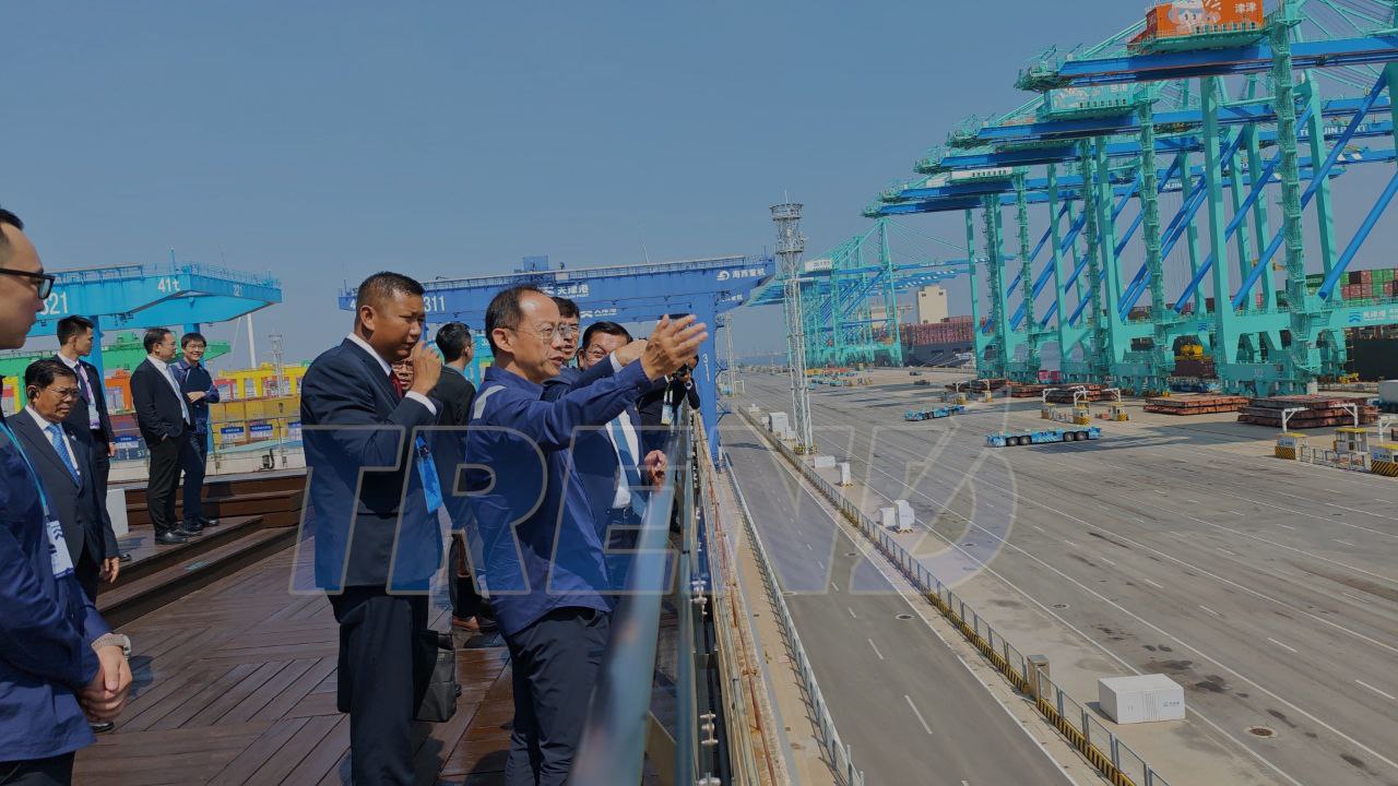 ယင်းနောက် ဆိပ်ကမ်းမှ AI စနစ်သုံး ကွန်တိန်နာတင်ဆောင်သည့် ယာဉ်များဖြင့် ရှန်ဟိုင်းပူးပေါင်းဆောင်ရွက်မှုအဖွဲ့ ထိပ်သီးအစည်းအဝေး