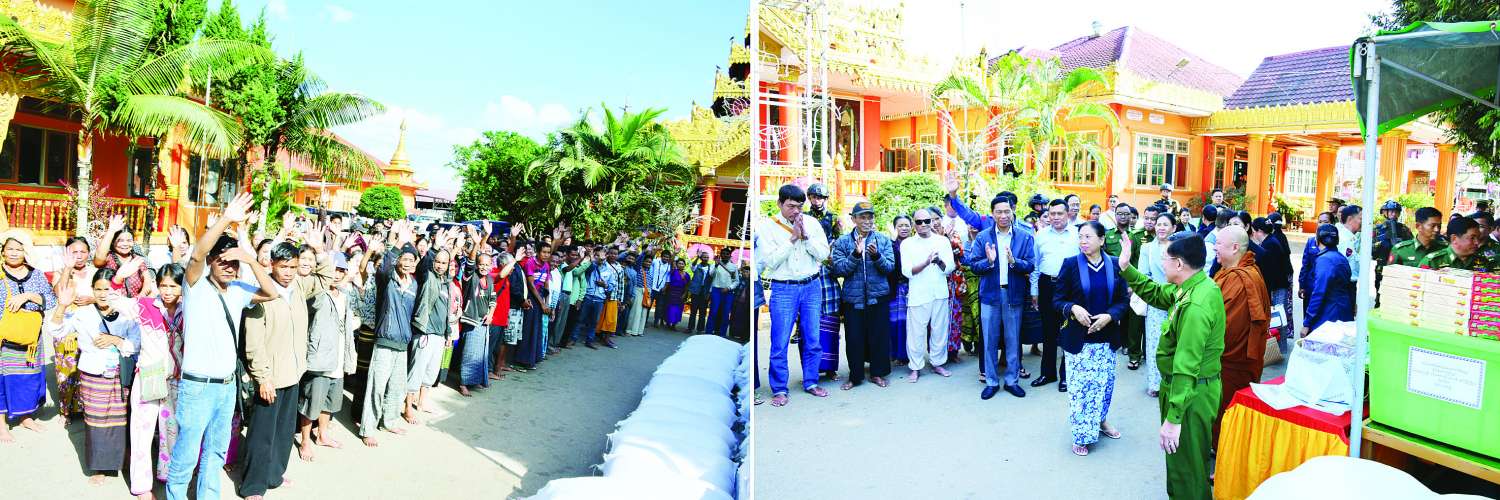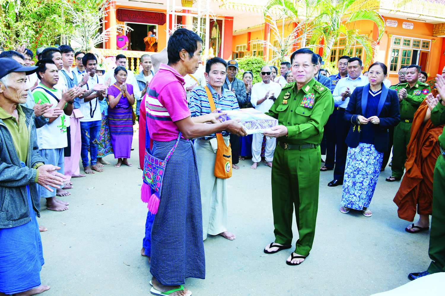 ဒီဇင်ဘာလ ၁၀ ရက်က နိုင်ငံ တော်စီမံအုပ်ချုပ်ရေးကောင်စီဥက္ကဋ္ဌ နိုင်ငံတော်ဝန်ကြီးချုပ်နှင့် ဇနီးတို့သည် လားရှိုးမြို့ တွင်ရောက်ရှိနေသည့် ယာယီနေရပ်စွန့်ခွာ ဒေသခံပြည်သူများအတွက် ငွေကျပ်သိန်း ၅၀၀၀၊ အဝတ်အထည် ၆၀၀၀ ကျော်၊ ဆန်နှင့်စားသောက်ဖွယ်ရာ ပစ္စည်းများကိုလှူ ဒါန်းခဲ့ကြောင်း သိရသည်။