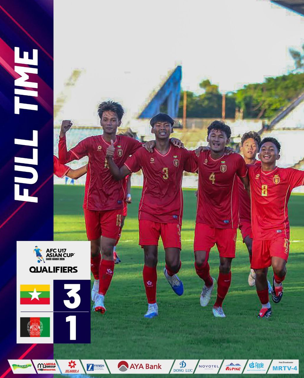 အာရှခြေစစ်ပွဲ ပထမပွဲစဥ် တွင် မြန်မာ ယူ၁၇ အသင်း အာဖကန်နစ္စတန်အသင်းကိုအနိုင်ရ