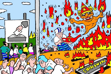 ပြီးခဲ့သည့်ရက်ပိုင်းက ရွှေဘို-ဝက်လက်ဘက် တိုက်ပွဲတစ်ခုနှင့်ပတ်သက်ပြီး PDF တွေ ရွာတစ်ရွာကို မီးရှို့ခဲ့သည့် ရုပ်သံတစ်ခု ထွက်ပေါ်လာခဲ့သည်။ သူတို့ ဟာသူတို့ မီးရှို့၍ ထွက်လာသည့်အကြောင်းကို ပြောနေခြင်းဖြစ်သည်။ မီးရှို့၍ ထွက်လာပြီး တပ်မတော်စစ်ကြောင်းလာလျှင် လက်နက်ကိုင်ပြီးဦးစွာ ပြေးကြလေသည်။ စစ်ကြောင်းနှင့် ဝေးရာရောက်မှ သူတို့ မီးရှို့ခဲ့သည်များကို ရုပ်သံရိုက်ကူး၍ "ရက်စက် လိုက်တာ၊ ဘာညာ"ဖြင့် ဝါဒဖြန့် အလှူခံကြလေသည်။ PDF များရှိသည့်နေရာ၊ စုဖွဲ့ ခိုအောင်းသည့်နေရာ၊ PDF များထွက် ပြေးသည့်နေရာအားလုံးက စစ်ဘေးစစ်ဒဏ်သင့်ကာ လူမှုဘ၀ အလုံးစုံ ချွတ်ခြုံကျရလေ သည်မှာ အရှိတရား ပင်ဖြစ်သည်။ လက်ရှိတွင်လည်း တောင်သာနှင့် ရွှေဘို၊ ဝက်လက် ဝန်းကျင်တွင် PDF တို့က တိုက်ပွဲဖော်ဆောင်ရင်း မြို့ရွာပျက်စီးနေမှုများကို မှတ်တမ်းတင်နေကြသည်။ နိုင်ငံရေး၊ စစ်ရေးကို နားလည်ကြသူများက စစ်ပွဲကို မခေါ်ကြပါနှင့်ဟု အကြိမ်ကြိမ်အဖန်ဖန် အတန်တန်တားသည့်ကြားက စစ်ပွဲကို ပျော်ပျော်ကြီး ခေါ်နေသည့် ဒေသများမှာ ပိုးဖလံကဲ့သို့ ပျက်စီးခြင်းများသာ ကြုံရဦးမည်ဖြစ် သည်။ လုပ်ချင်ရာလုပ်ပြီး ရက်စက်လိုက်တာဟု ပြောနေခြင်းသည် အဖြေမဟုတ်။ စစ်ဖြစ်ရခြင်း အ ကြောင်းအရင်းမှန်ကို ရပ်တန့်နိုင်မှ ပြည်သူ့ဘ၀ သက်သာရာရတော့မည်ဟု မြို့ရွာများထဲက တိုက်ပွဲဖော် နေသည့် လက်နက်ကိုင်များကို ပြောရတော့မည်ဖြစ်သည်။