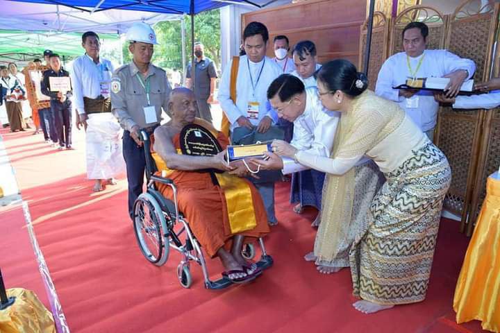 ယင်းနောက် ဆရာတော်ကြီးက နိုင်ငံတော်စီမံအုပ်ချုပ်ရေးကောင်စီဥက္ကဋ္ဌ နိုင်ငံတော်ဝန်ကြီးချုပ်နှင့် အဖွဲ့ဝင်များအား ဗုဒ္ဓဆင်းတုတော်များကို ဓမ္မလက်ဆောင် အဖြစ်ပေးအပ်ပြီး စုပေါင်းမှတ်တမ်းတင်ဓာတ်ပုံရိုက်ကြသည်။