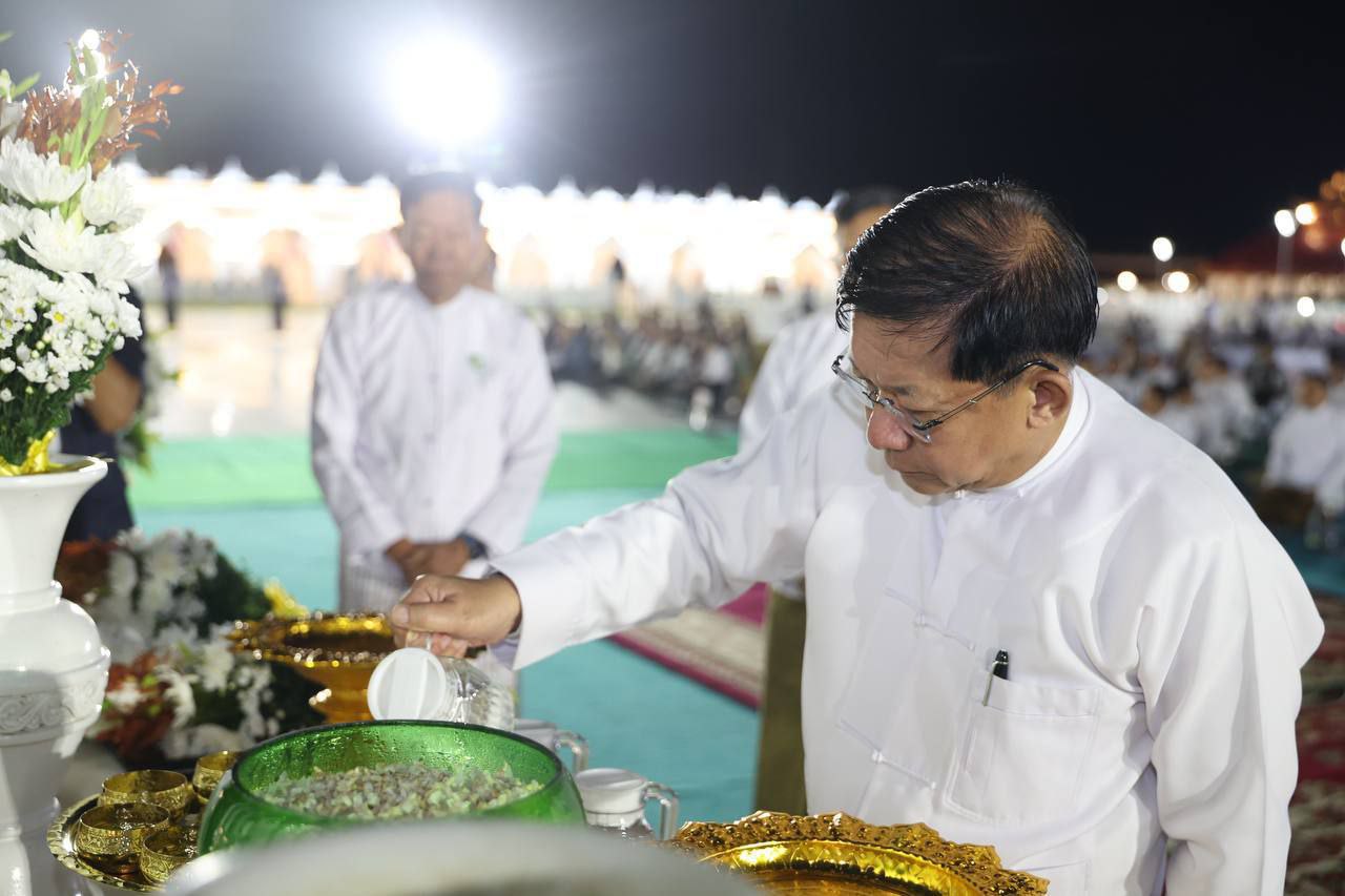 မာရဝိဇယဗုဒ္ဓရုပ်ပွားတော်မြတ်ကြီးအား ၂၀၂၅ ခုနှစ်၊တန်ဆောင် တိုင်ပွဲတော် မသိုးရွှေကြာသင်္ကန်း ဆက်ကပ်လှူဒါန်းခြင်း မဟာမင်္ဂလာအခမ်း အနားကို ယနေ့ (နိုဝင် ဘာ ၄)နံနက် မင်္ဂလာအချိန်တွင် ကျင်းပပြုလုပ်ရာ ပြည်ထောင်စုသမ္မတမြန်မာနိုင်ငံတော်ယာယီသမ္မတနိုင်ငံတော်လုံခြုံ ရေးနှင့်အေးချမ်းသာယာရေးကော်မရှင်ဥက္ကဋ္ဌ ဗိုလ်ချုပ်မှူးကြီးမင်းအောင်လှိုင် တက်ရောက်၍ မသိုးရွှေကြာ သင်္ကန်းဆက်ကပ်လှူဒါန်းခဲ့သည်။