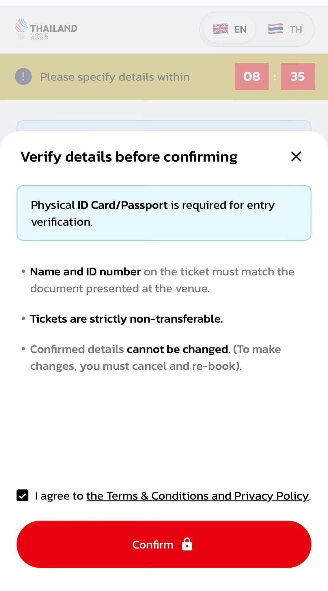 အဆင့်(၄) မိမိ အမည်၊ ID/Passport ဖြည့်သွင်း၍ Confirmed ပြုလုပ်ပြီးပါက QR ကျလာပါလိမ့်မည်။