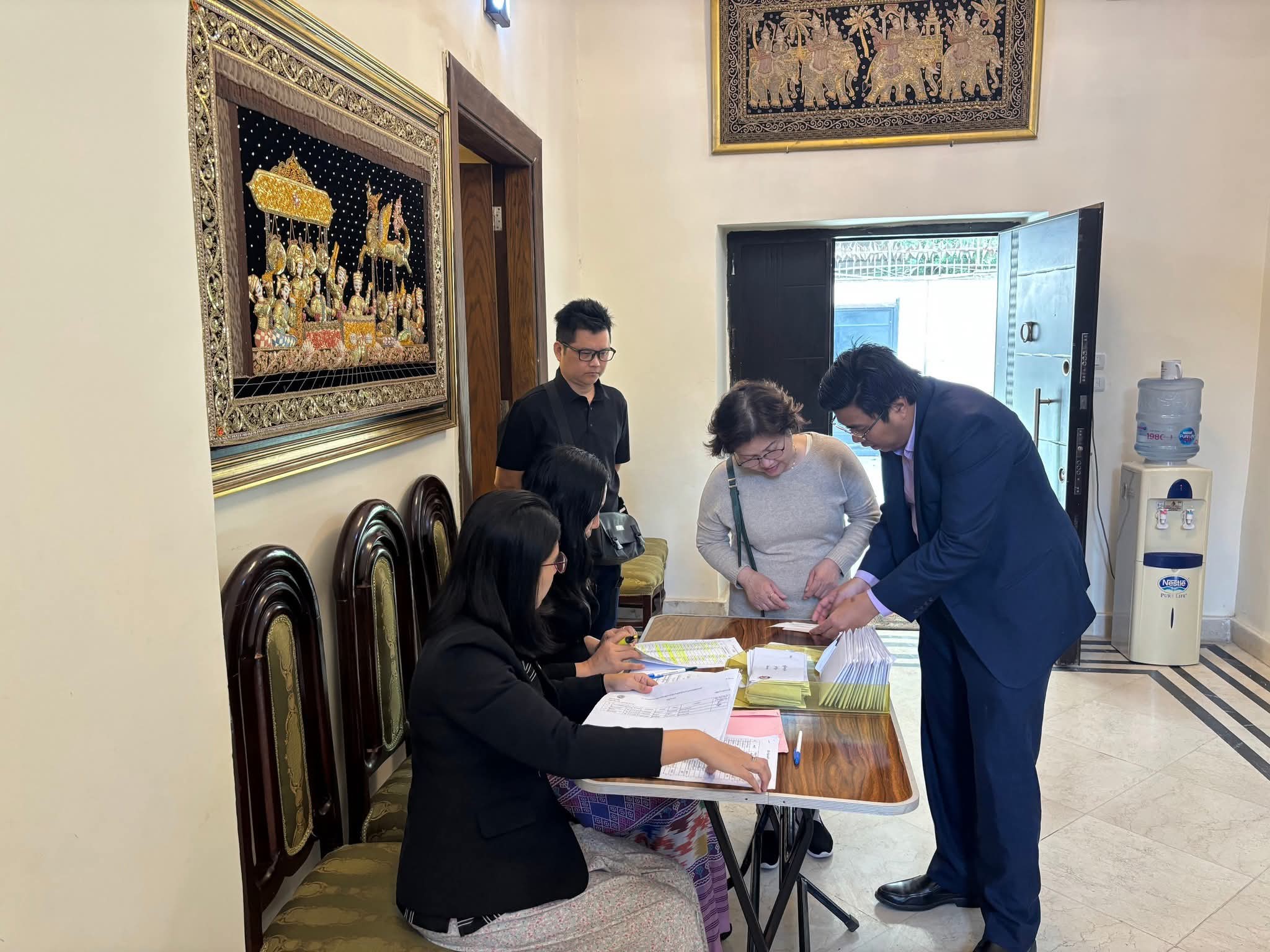 ပြည်ပရောက်မြန်မာနိုင်ငံသားများ ၂၀၂၅ ခုနှစ်၊ အထွေထွေရွေးကောက်ပွဲတွင် ကြိုတင်ဆန္ဒမဲဖြင့် မဲပေးနိုင်ရေးအတွက် မြန်မာသံရုံး၊ ကိုင်ရိုမြို့၌ နိုဝင်ဘာလ ၂၉ရက်နေ့မှ ဒီဇင်ဘာလ ၁ ရက်အထိ မဲရုံဖွင့်လှစ်ခဲ့ရာ အီဂျစ်နိုင်ငံတွင် နေထိုင်အလုပ်လုပ်ကိုင်လျက်ရှိကြသော မြန်မာနိုင်ငံသားများနှင့် ကျောင်းသား/သူများ လာရောက်၍ ဆန္ဒမဲပေးခဲ့ကြကြောင်းသိရသည်။