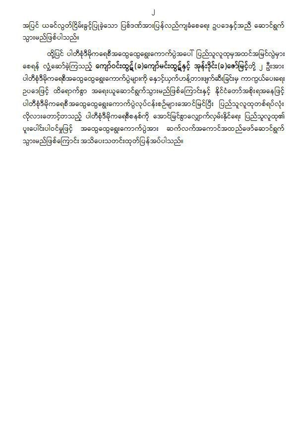 ထို့ပြင် ပါတီစုံဒီမိုကရေစီအထွေထွေရွေးကောက်ပွဲအပေါ် ပြည်သူလူထုမှအထင်အမြင်လွဲမှားစေရန် လှုံ့ဆော်ခဲ့ကြသည့် ကျော်ဝင်းထွဋ် (ခ)ကျော်မင်းထွဋ်နှင့် အုန်းဒိုင်း(ခ)ဇော်မြင့်တို့ ၂ ဦးအား ပါတီစုံဒီမိုကရေစီအထွေထွေရွေးကောက်ပွဲများကို နှောင့်ယှက်ဟန့်တားဖျက်ဆီးခြင်းမှ ကာကွယ်ပေးရေးဥပဒေဖြင့် ထိရောက်စွာ အရေးယူဆောင်ရွက်သွားမည်ဖြစ်ကြောင်းနှင့် နိုင်ငံတော်အစိုးရအနေဖြင့် ပါတီစုံဒီမိုကရေစီအထွေထွေရွေးကောက်ပွဲလုပ်ငန်းစဉ်များအောင်မြင်ပြီး ပြည်သူလူထုတစ်ရပ်လုံးလိုလားတောင့်တသည့် ပါတီစုံဒီမိုကရေစီစနစ်ကို အောင်မြင်စွာလျှောက်လှမ်းနိုင်ရေး ပြည်သူ လူထု၏ပူးပေါင်းပါဝင်မှုဖြင့် အထွေထွေ ရွေးကောက်ပွဲအား ဆက်လက်အကောင်အ ထည်ဖော်ဆောင်ရွက်သွားမည်ဖြစ်ကြောင်း အသိပေးသတင်းထုတ်ပြန်ထားသည်။ နဒီ